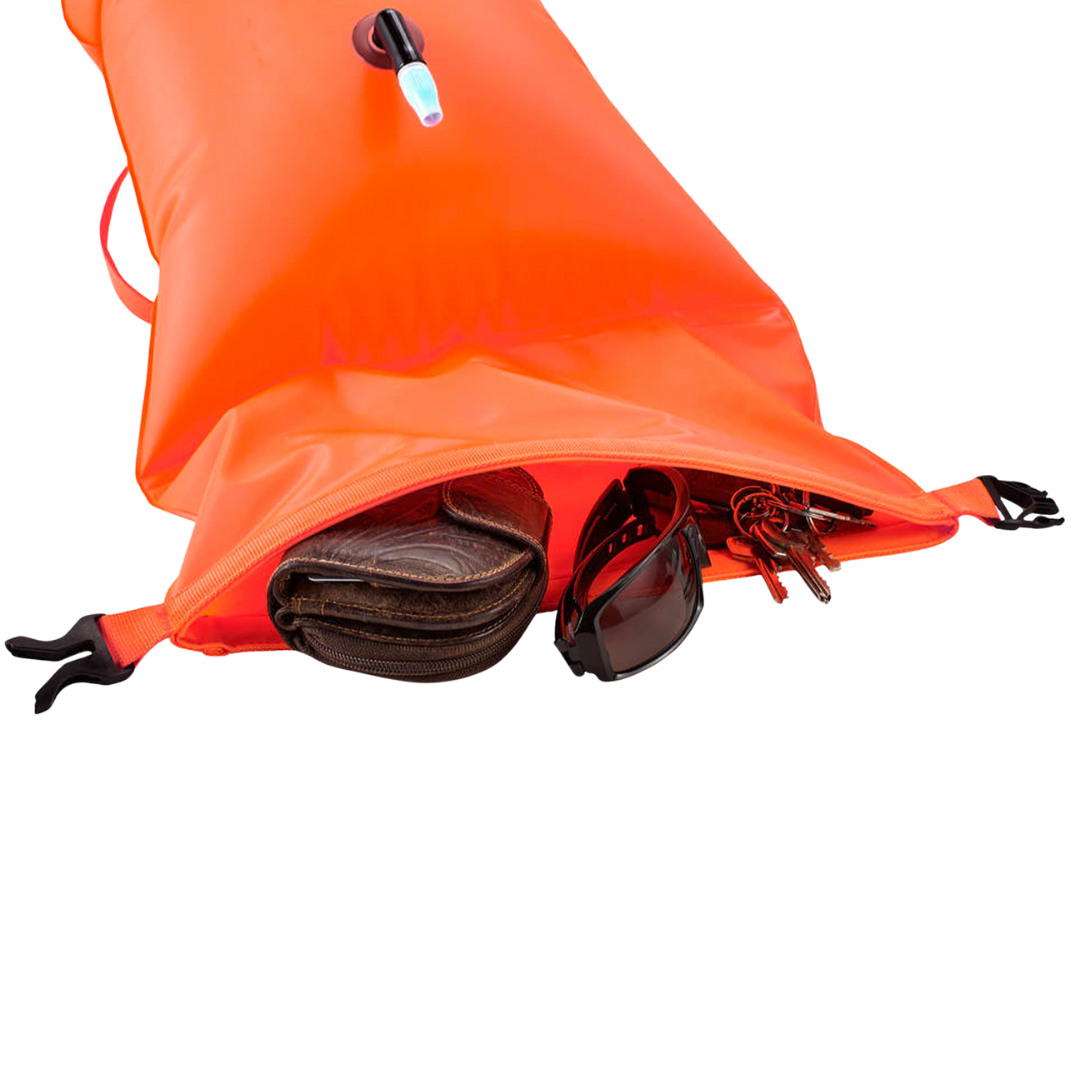 Unverzichtbares Sicherheitszubehör für Freiwasserschwimmer. Gut sichtbare Boje mit integrierter wasserdichter Tasche für persönliche Gegenstände. Das leichte Hüftgurtdesign sorgt für minimale Beeinträchtigung beim Schwimmen und bietet gleichzeitig wichtige Sichtbarkeit und Notschwimmfähigkeit.