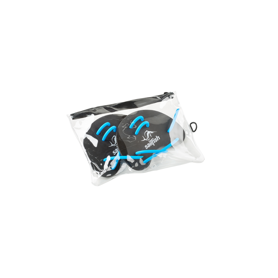 Trainingsgerät zur Entwicklung der Unterarm- und Fingermuskulatur beim Schwimmen. Kompaktes Design in Einheitsgröße aus strapazierfähigem Polypropylen und TPR. Mit praktischer Reißverschlusstasche und Führung für die optimale Handposition.