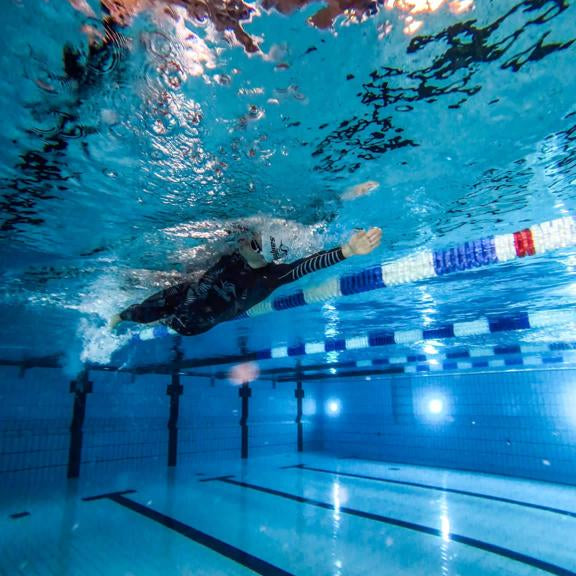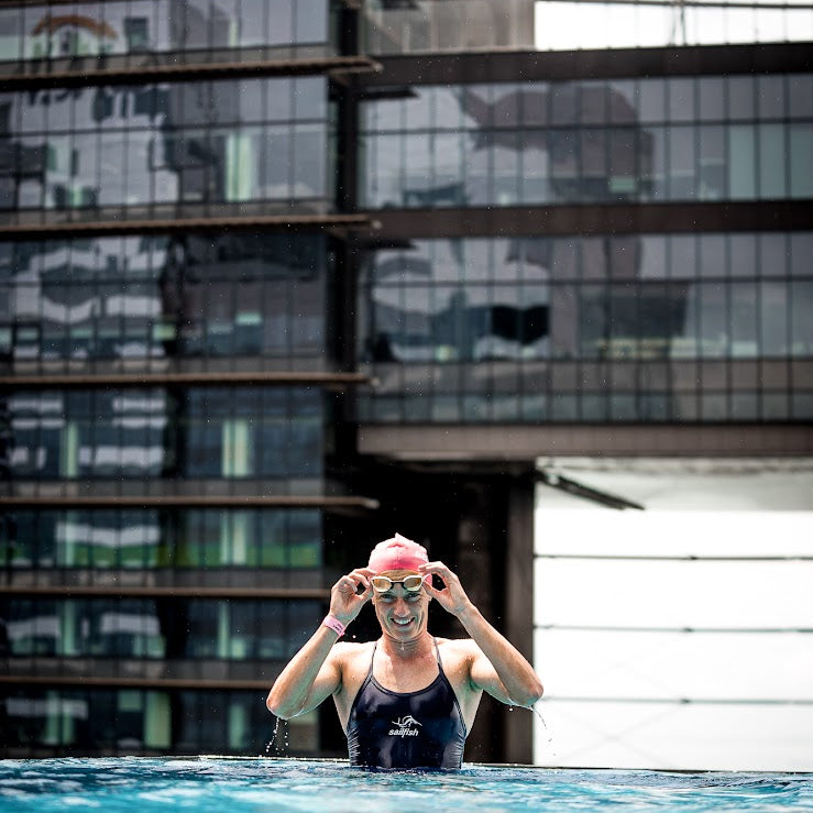 Die besten Triathletinnen und Triathleten der Welt schwimmen sailfish.